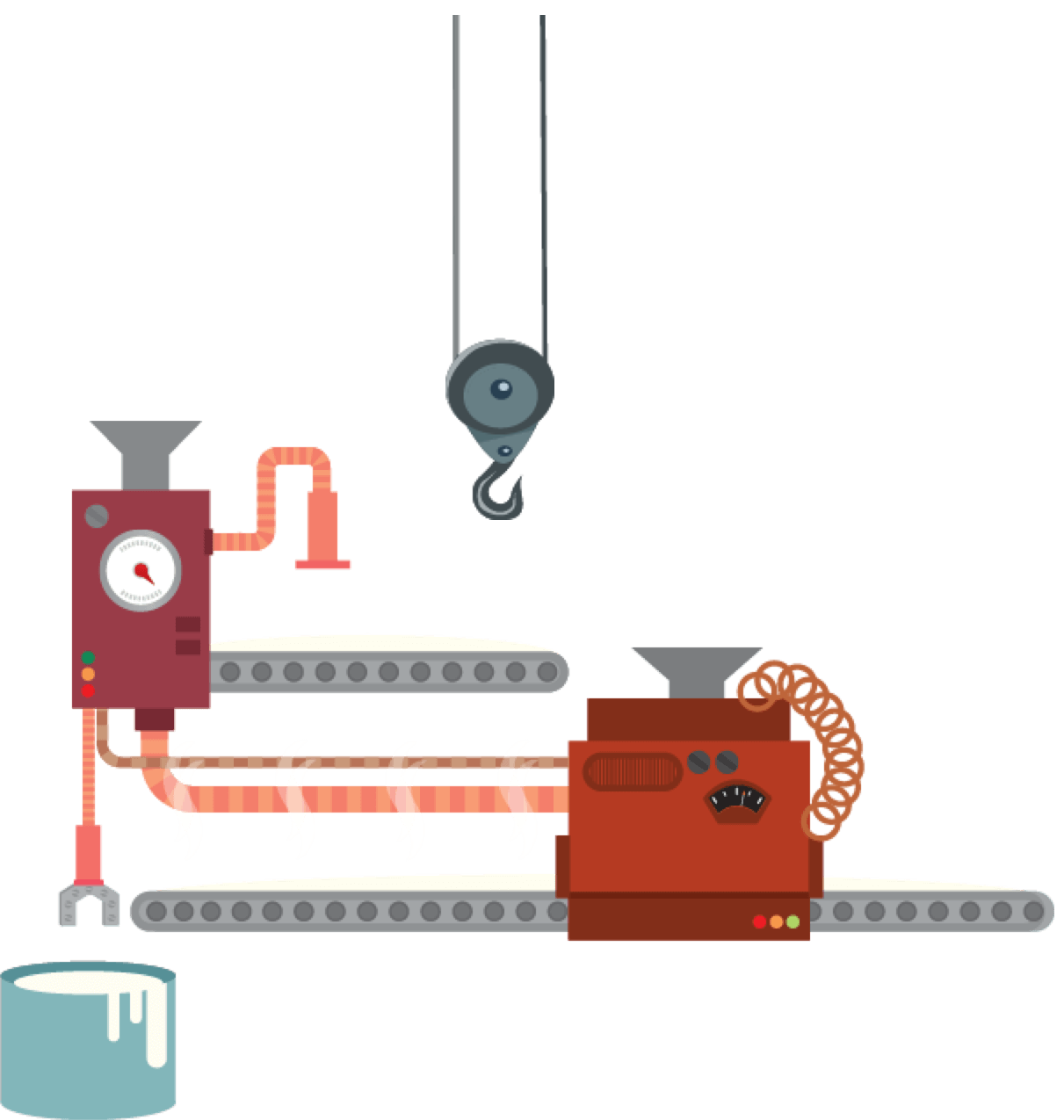 The pulp is pumped into a large papermaking machine, which stretches almost four times the length of an Olympic-size swimming pool and stands as high as a three-storey building. Starting at the first section called the head box, the pulp mass is squirted through a horizontal slit over a moving wire mesh to remove excess water.
